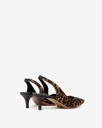 Printed stiletto heel pumps "Pony" style calfskin leather with leopard print Pointed toes Rear strap with elasticated finish Covered stiletto heels Soft leather insoles and outsoles Soft leather lining Heel height: 5 cm / 2 in. Style: ES0033FA-B3A31S PIERY 100% calfskin leather Care & Sustainability the history and environmental impact of this product