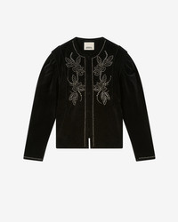 Short cotton velvet jacket Round neck Structured shoulders Long sleeves gathered at the crown Done up with hooks Symmetrical floral embroidery detailing Decorative studs Straight cut Style: VE0648FAD1J05I01BK PIETRA 100% cotton Care & Sustainability Dry clean only For more details, see the instructions on the composition label