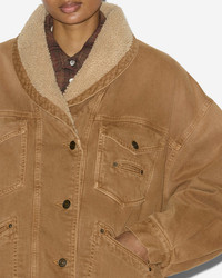 Denim and faux fur jacket Shawl collar Long sleeves Straight buttoned cuffs Buttoned front Patch pockets with buttoned flaps on the chest Piped ticket pocket Piped side pockets Fitted waistband with buttoned tabs Leather label with an "Isabel Marant" logo Shearling style faux fur lapel and lining Relaxed fit Style: VE0525FAC3H01I10OE PIMIA 80% cotton, 20% hemp Care & Sustainability Dry clean only For more details, see the instructions on the composition label the history and environmental impact of this product