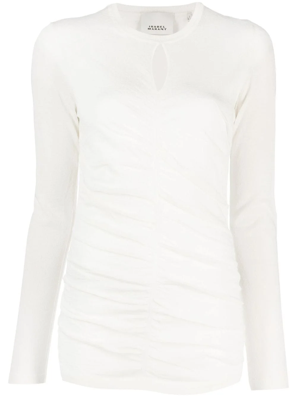 Posy sweater Highlights - White - Wool blend - Gathered detailing - Keyhole neck - Round neck - Long sleeves - Straight hem Imported Composition Wool 54%, Rayon 46% SIZE & FIT Model measurements Height 5 ft 10 in(1.77 m) Bust/Chest 29.92 in(76 cm) Hips 34.25 in(87 cm) Waist 23.62 in(60 cm) Measurement LENGTH 20.86 in(53 cm) WAIST 28.34 in(72 cm) BUST 28.34 in(72 cm) FittingInformation Designed for a slim fit that sits just away from the body offering a close yet comfortable fit Made with a lightweight knit, this piece offers some stretch This piece fits true to size – take your usual size