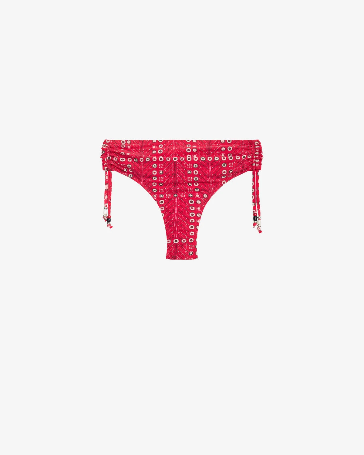 Printed bikini panties Elastic waist Gathered sides Beaded strings Lined Style: SL0010FBC1P01I70RD PRUDI 78% polyamide, 22% elastane