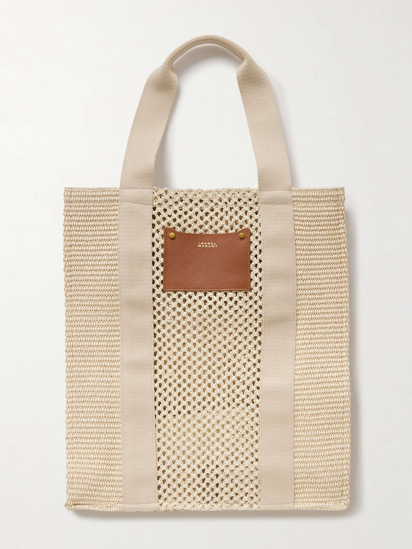 EDITORS'NOTES Isabel Marant's 'Aruba' bag is intricately crafted from cotton-blend and features a crocheted center panel with a logo-stamped leather patch. It has grosgrain top handles and plenty of space inside for your water bottle, spare sandals and sunglasses case. SIZE & FIT This item’s measurements are: - Handle Drop: 17cm / 6.7in - Height: 38cm / 15in - Width: 34cm / 13.4in - Depth: 11cm / 4.3in DETAILS & CARE - Beige cotton-blend and grosgrain, brown leather (Cow) - Two top handles - External slip pocket - Open top - Comes with dust bag - Weighs approximately 1.3lbs/ 0.6kg