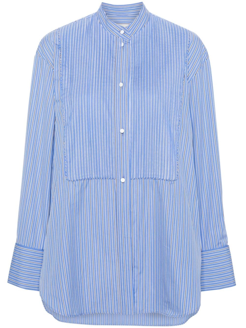 Ramsey pleated cotton shirt Highlights - Blue - Cotton - Poplin texture - Vertical stripe pattern - Pleat detailing - Band collar - Front button fastening - Drop shoulder - Long sleeves - Buttoned cuffs - Curved high-low hem Imported Composition Cotton 100% SIZE & FIT Model measurements Height 5 ft 10 in(1.78 m) Bust/Chest 29.92 in(76 cm) Hips 34.64 in(88 cm) Waist 23.62 in(60 cm) FittingInformation Designed to be unstructured, offering a loose fit throughout Made from a midweight non-stretch fabric This piece fits true to size – take your usual size