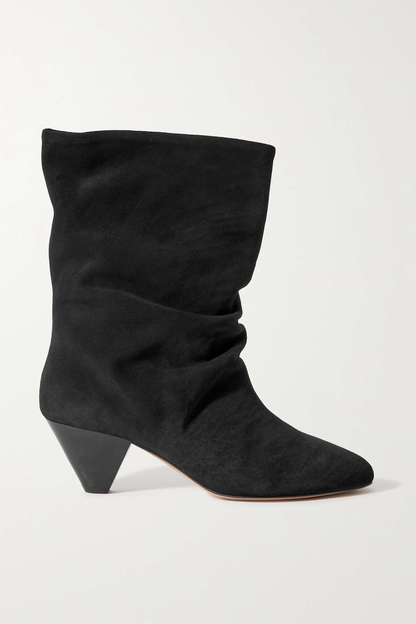 Effortlessly cool boots are a staple in Isabel Marant's collections. This 'Reachi' pair is made from the softest suede and designed for the perfect slouchy fit. They're set on a stacked pyramidal heel and have an elegant almond-shaped toe. Size & Fit Fits true to size, please refer to Isabel Marant size guide below: - FR 35 = UK 2/ US 5 - FR 36 = UK 3/ US 6 - FR 37 = UK 4/ US 7 - FR 38 = UK 5/ US 8 - FR 39 = UK 6/ US 9 - FR 40 = UK 7/ US 10 - FR 41 = UK 8/ US 11 - FR 42 = UK 9/ US 12 Details & Care - Heel measures approximately 55mm/ 2 inches - Black suede (Calf) - Slip-on