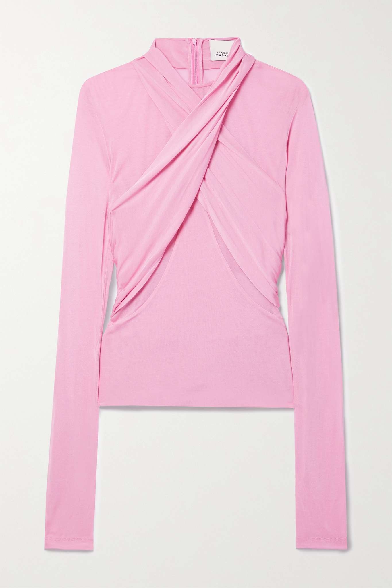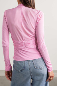 EDITORS'NOTES Isabel Marant's 'Resly' top is designed with draped, cross-over panels that create the illusion of a halterneck style as they wrap around your frame. It's made from stretch-jersey for a slim fit and has a layered hem. Tuck yours into a tonal skirt or jeans. SIZE & FIT - Fits true to size, take your normal size - Designed for a close fit - Lightweight, stretchy fabric - Model is 177cm/ 5'10" and is wearing a FR 36 DETAILS & CARE - Pink stretch-jersey - Concealed zip fastening along back - 100% viscose - Dry clean