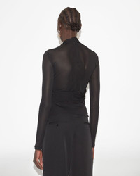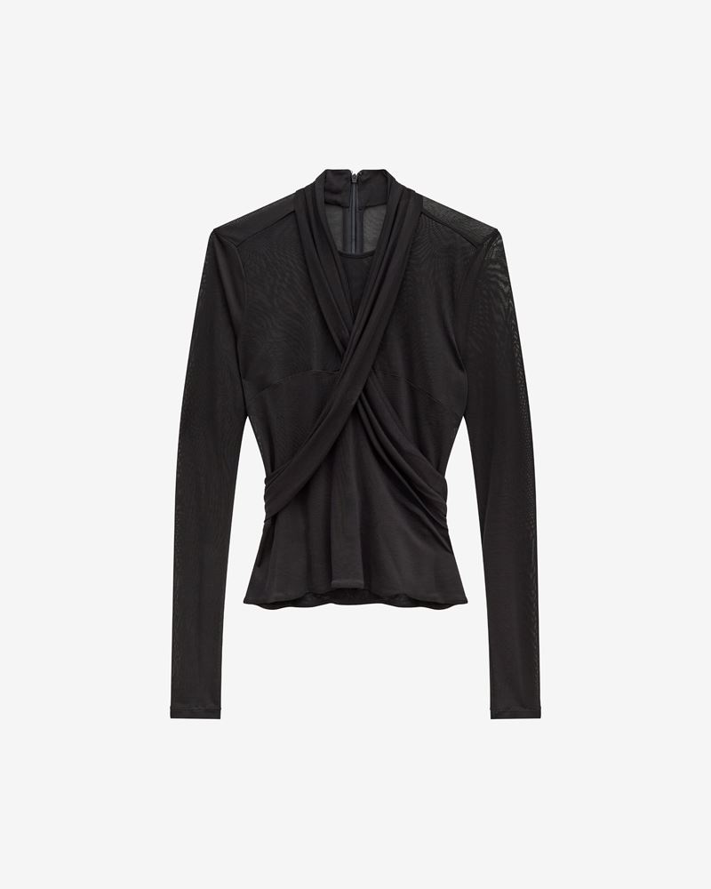 Black top with long sleeves Transparent effect Draped details Reference: HT0271FAA4J34I01BK RESLY 100% Viscose FITTING ADVICE Fits true to size