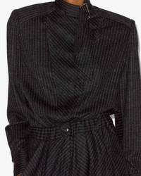Virgin wool and cotton blend tennis stripe jumpsuit Draped round collar with adjustable rings Long sleeves with straight snap-buttoned cuffs Elasticated, asymmetrical, snap-fastened waist Wide piped pockets on the sides and back Flowing ribbed pants Insert on legs for seamless striped effect Style: CB0094FA-C4J12I RHEANE 86% virgin wool, 14% cotton