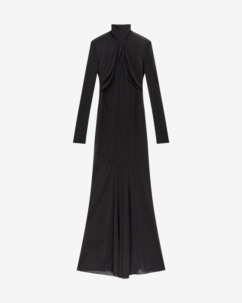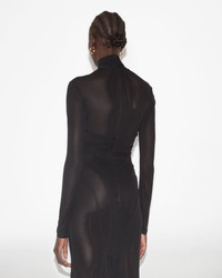 Piece from the Winter 2023 fashion show Black dress with long sleeves Turtleneck Front draped details Reference: RO0301FAA4J34I01BK RIMMA 100% Viscose FITTING ADVICE Fits true to size