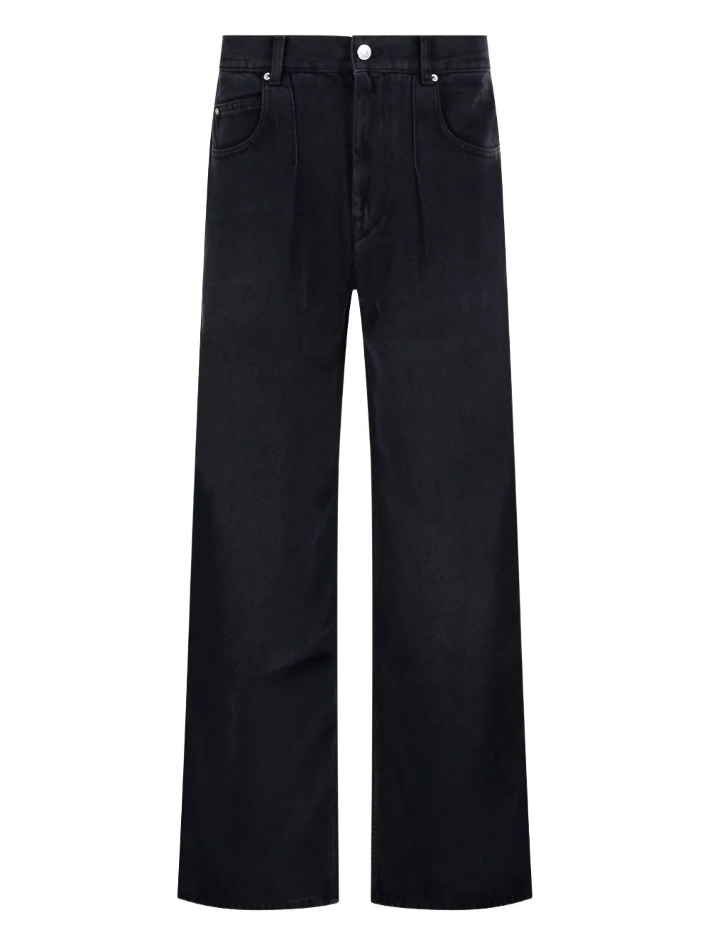 pleated faded jeans Highlights - Faded black - Five-pocket styling - Button fly - Straight leg - Mid-rise waist Imported Composition Lyocell 77%, Cotton 23% SIZE & FIT Model measurements Height 5 ft 10 in(1.77 m) Bust/Chest 32.67 in(83 cm) Hips 37 in(94 cm) Waist 25.98 in(66 cm)