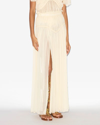 Long skirt in gathered plain-colored silk Elastic waist Braided silk details in front and back Done up on the side with a hook and a hidden zipper High waist Flared and flowing Style: JU0356FAC2J04I23EC ROLANDE 100% silk