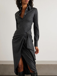 Rosalie draped pinstriped wool and cotton-blend mini dress Dark gray