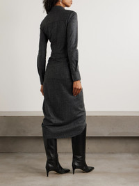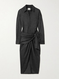 Isabel Marant's 'Rosalie' shirt dress feels effortlessly elegant. It's made from pinstriped wool and cotton-blend, which gathers through the waist finishing in a draped skirt. Lean into the Western-inspired mood with your styling. Size & Fit - Fits true to size, take your normal size - Cut for a slim fit - Mid-weight, non-stretchy fabric - Model is 177cm/ 5'10" and is wearing a FR 36 Model measurements: - Bust: 77cm/ 30.5" - Waist: 62cm/ 24.5" - Hip: 88cm/ 34.5" Details & Care - Charcoal and white wool and cotton-blend - Concealed snap fastenings along front - 86% virgin wool, 14% cotton; trim: 100% cotton - Unlined - Dry clean