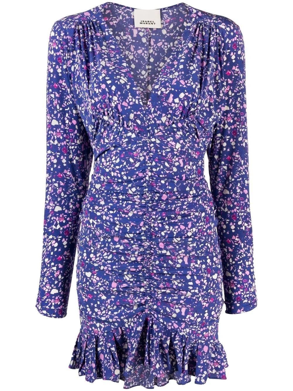 Lara floral-print mini dress Isabel Marant's minidress is decorates with scores of miniature blooms that give it a romantic feel. The wispy ruffles continues the aesthetic. Highlights - Blue/multicolour - Stretch-silk - Ruched detailing - Ruffled trim - Plunging v-neck - Peplum hem Imported Composition Silk 91%, Spandex/Elastane 9% SIZE & FIT Model measurements Height 5 ft 10 in(1.78 m) Bust/Chest 29.92 in(76 cm) Hips 34.64 in(88 cm) Waist 23.62 in(60 cm) Measurement HIPS 28.34 in(72 cm) WAIST 21.25 in(54 cm) FittingInformation This piece fits true to size. We recommend you get your regular size Designed for a close fit at the bust and waist, but loose at the hip Made with a mid-weight stretch fabric Washing instructions Dry Clean Only
