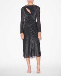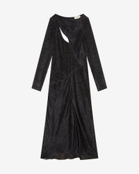 78% silk, 22% viscose Silk velvet dress with long sleeves Printed devore velvet Back opening Shoulder draping Style: RO0354FAB1J01I01BK SABRINA