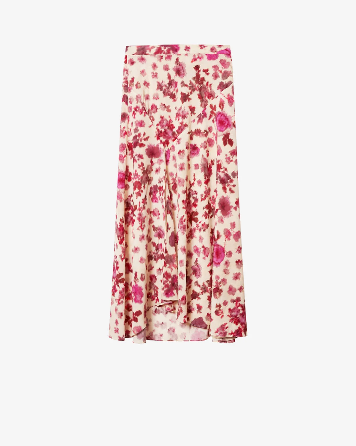 Stretch silk rose print skirt Fitted waistband Done up in back with a hook and zipper Asymmetrical hem with slit in front Flared and flowing Style: JU0012FBD1J11I40PK SAKURA 91% silk, 9% elastane Care & Sustainability Dry clean only For more details, see the instructions on the composition label the history and environmental impact of this product