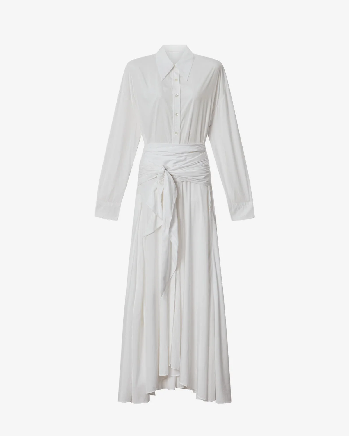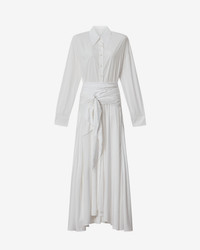 Long plain-colored crepe shirt dress Shirt collar Buttoned front Long sleeves Straight buttoned cuffs Matching removable belt Side slits Flared cut Style: RO0861FBC3J09I20WH SAMANTHA 75% modal, 25% polyamide