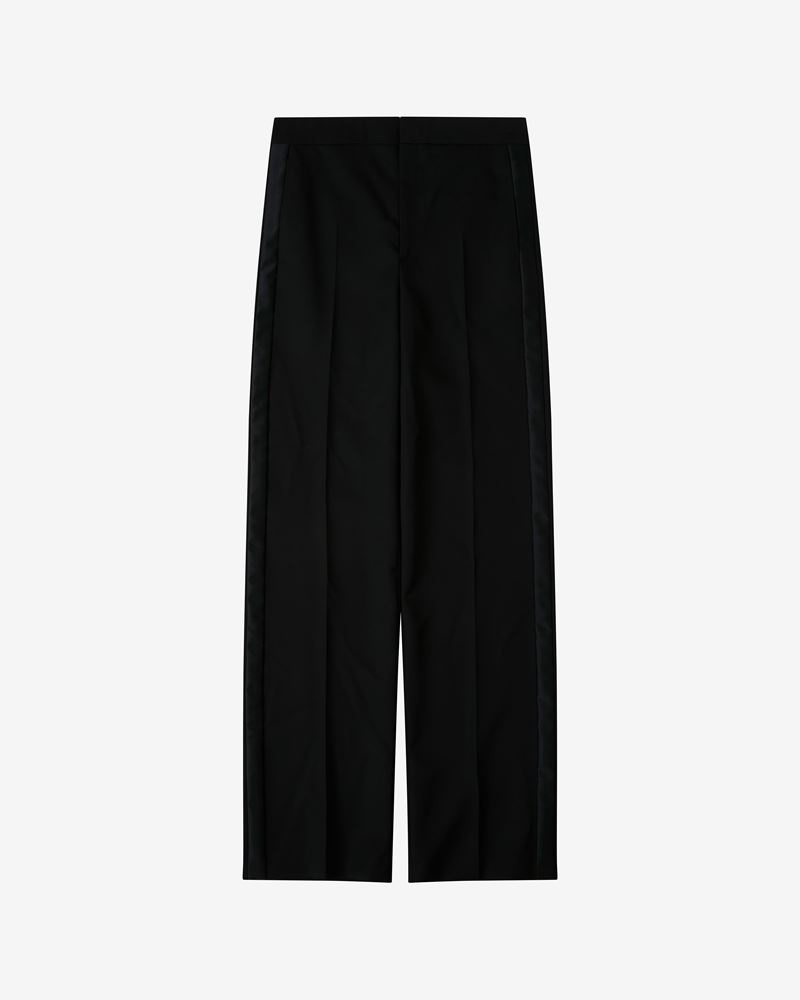 Black wide-leg hemp pants Side satin tape Side pockets Reference: PA0030FD-A1F16I SCARLY 100% Wool