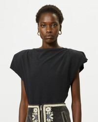 Asymmetrical plain-colored cotton T-shirt Boat neck Structured padded shoulders Short sleeves Side slit Asymmetrical hem Relaxed fit Style: TS0097FAA1N41I01BKI SEBANI 100% organic cotton Care & Sustainability Machine wash on a gentle cycle, inside out and at a maximum temperature of 30°C For more details, see the instructions on the composition label Organic Textile Certified by Ecocert Greenlife - 257833 The GOTS certification attests that the cotton used for this item is organic. It guarantees respect for the environment and responsible social practices at all stages of its production. the history and environmental impact of this product