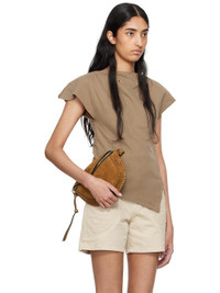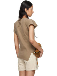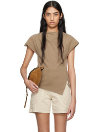 Organic cotton jersey T-shirt. · Boat neck · Vents at asymmetric hem · Pleat at padded shoulders · Raw edge at cap sleeves · Logo embroidered at back collar Supplier color: Light khaki