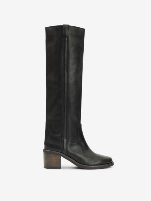 Suede knee high boots round toe slip-on style branded insole mid 80mm block heel Style: BT0003FA-A1A10S SEENIA 100% leather