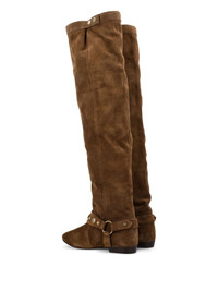 Selize suede buckle boots Highlights - Brown - Suede leather - Buckle strap - Gold-tone studs - Pointed toe - Knee-high shaft Made in Italy Composition Sole: Calf Leather 100% Outer: Calf Suede 100% Lining: Leather 100%