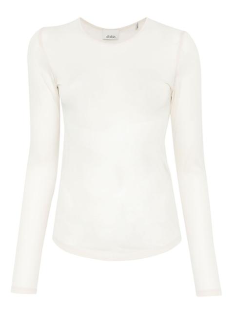 sheer-panel long-sleeve top Highlights - Black - Sheer mesh fabric - Round neck - Long sleeves Imported Composition Fabric 100% Washing instructions Read Manufacturer Guidelines