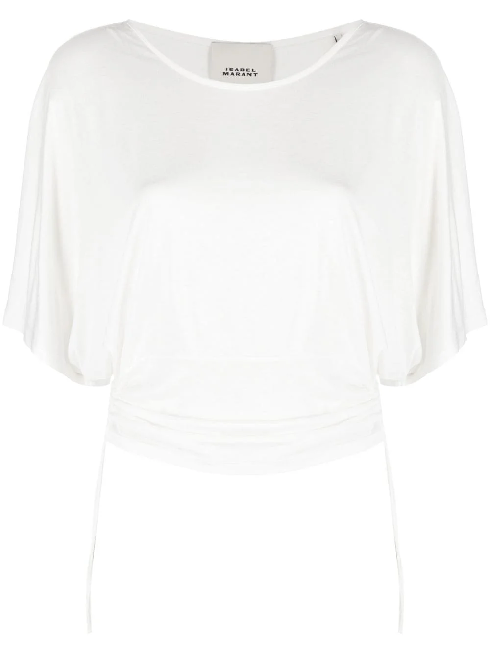 Tores draped T-shirt Cut from fluid jersey, this Isabel Marant T-shirt puts a spin on the classic white tee. It has flowing draped sleeves that contrast the fitted waist, adjustable through side drawstrings. Highlights - White - Draped design - Ruched detailing - Side drawstring fastening - Round neck - Half-length sleeves Imported Composition Viscose 100% SIZE & FIT Model measurements Height 5 ft 9 in(1.76 m) Bust/Chest 33.07 in(84 cm) Hips 38.58 in(98 cm) Waist 24.8 in(63 cm) FittingInformation The adjustable drawstring means that you can adjust this piece’s fit to suit your comfort and preference Made from a midweight non-stretch fabric, this piece offers minimal elasticity when worn This piece fits true to size – take your usual size Washing instructions Dry Clean Only