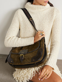 Sierra leather-trimmed suede shoulder bag Army green