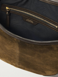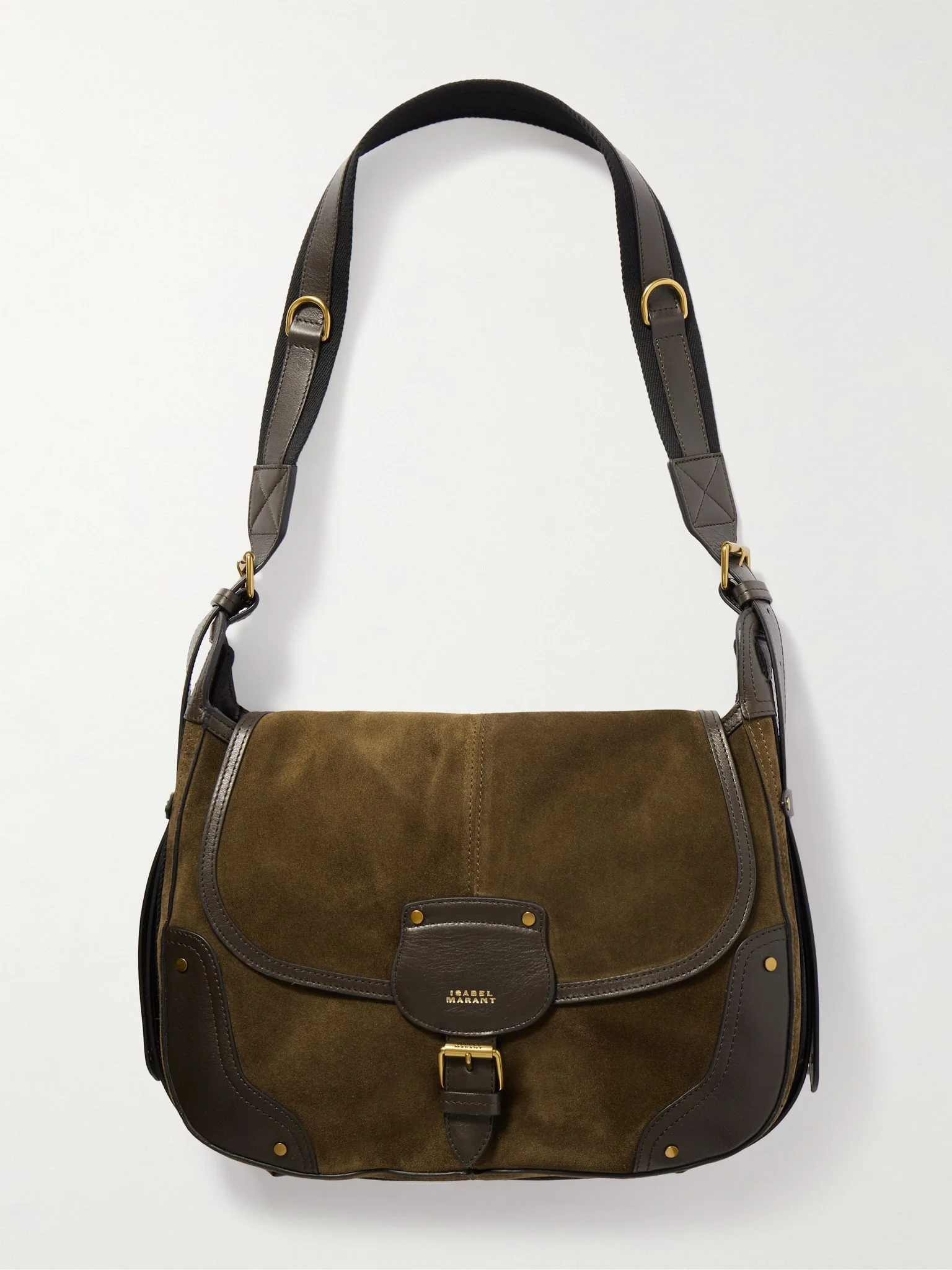 Isabel Marant's 'Sierra' bag is reminiscent of authentic Western saddle styles. Made from suede trimmed with leather, it has gold-tone hardware and an adjustable grosgrain strap. Stow your phone, wallet and keys inside. Details & Care - Green suede, brown leather (Calf) - Adjustable shoulder strap - Internal zipped pocket - Twill lining - Magnetic-fastening front flap