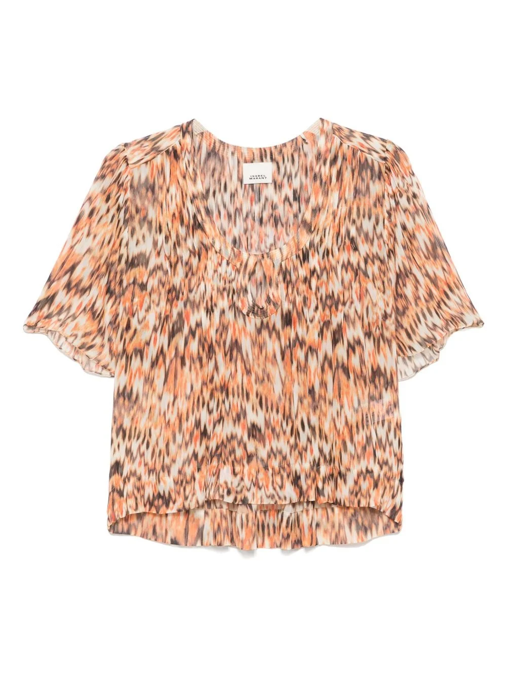 silk blouse Highlights - Orange - Round neck - Short sleeves - Cut-out detailing - All-over graphic print Imported Composition Lining: Silk 100%, Polyester 100% Outer: Silk 100%