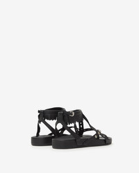 Sandals in full-grain leather Perforated straps with metal flowers Ankle straps with fringed finishes Done up in back with a buckle Leather details Rubber outsoles Soft leather lining Style: SD0208FAC1B09S01BK SILYA 100% bovine leather