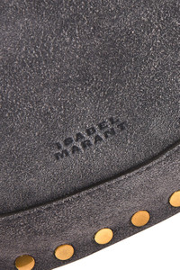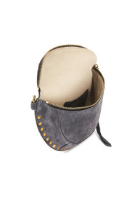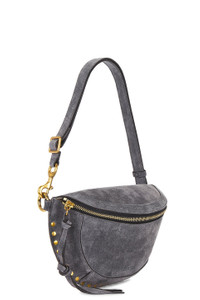 - Suede exterior with textile lining - Front zipper closure - One main compartment - Interior leather card slot - Back slip pocket - Gold-tone studded trim - Detachable and adjustable waist strap - Measures approx 9" W x 6" H x 1.5" D - Revolve Style No. IMAR-WY242 - Manufacturer Style No. BJ0001FA-A3C32M