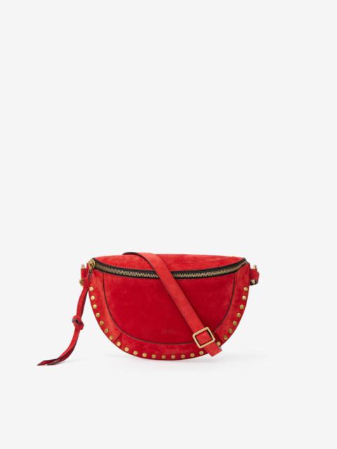 100% calf velvet leather Iconic belt bag in suede leather Removable adjustable shoulder strap Worn on the shoulder or crossbody style Zippered flap on the front for closing Textile lining Patch pocket on the inside Patch pocket on the back Gold tone metal studs and snap hooks Size: 25 x 16 x 9 cm (9.8 x 6.3 x 3.5 in.) Style: BJ0001FA-A3C32M SKANO