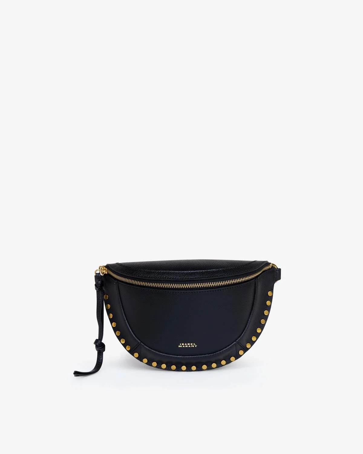 100% leather Iconic black leather studded belt bag Removable and adjustable strap Zip fastening An internal slip pocket A back slip pocket Gold-tone studs Dimensions : 20,5 x 21 x 5 cm Style: BJ0001FA-A1C02M SKANO