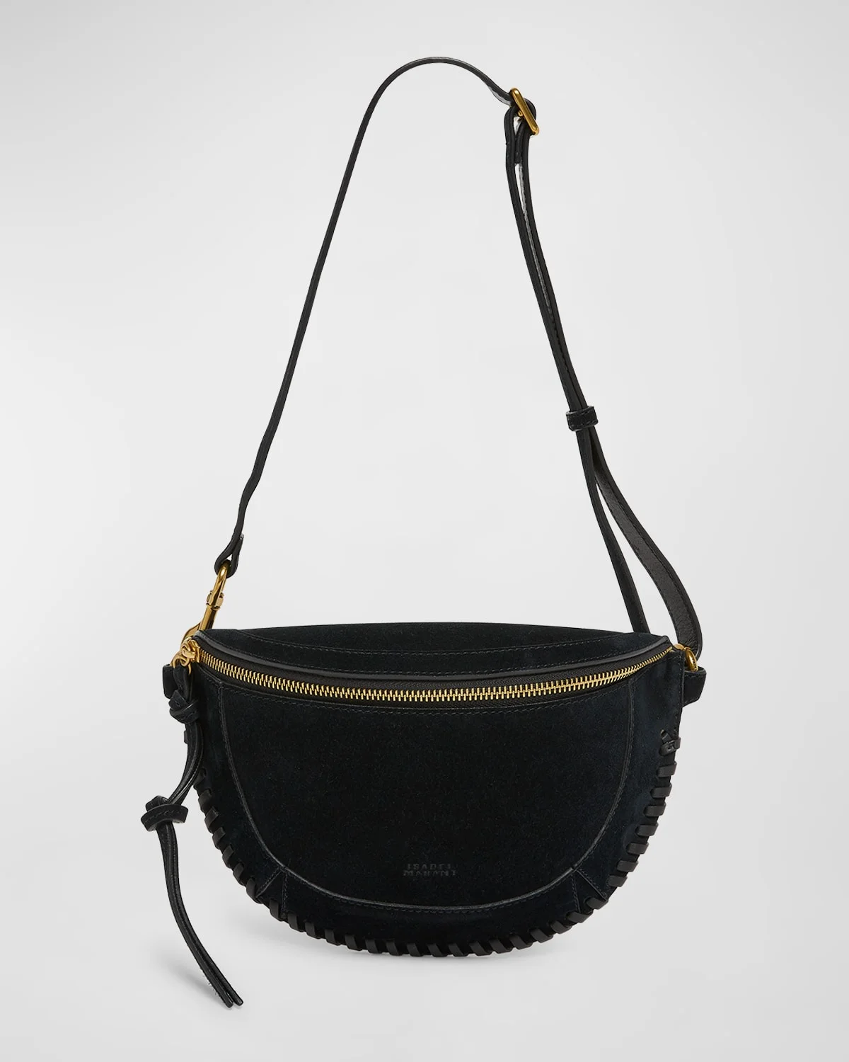 - Isabel Marant "Skano" suede leather belt bag with braided trim - Detachable, adjustable waist strap - Can be worn as a shoulder or belt bag - Zip top closure - Approx. 3.5"H x 6.2"W x 9.8"D - Imported