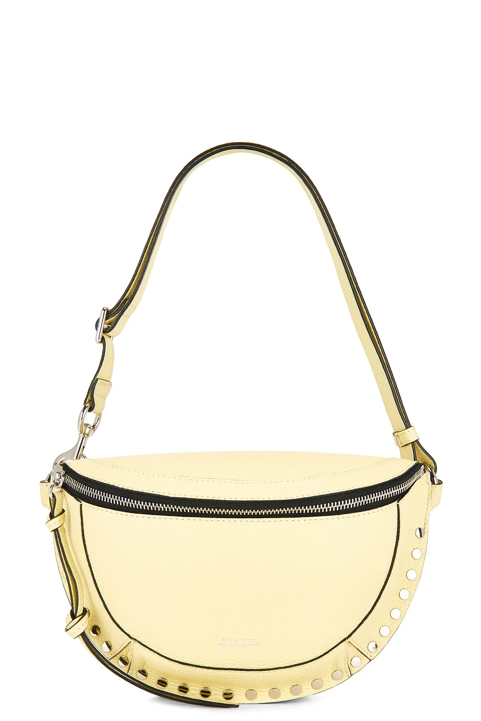 - Dyed calfskin exterior with cotton lining - detailed with logo debossing and signature studs - Top zip-around closure - One main compartment with single interior flat pocket - Removable, adjustable crossbody strap - Measures approx - 10" W x 6" H x 1" D Adjustable belt with a 29-44" range - Revolve Style No. IMAR-WY251 - Manufacturer Style No. 26PBJ0001FA-D1C04M