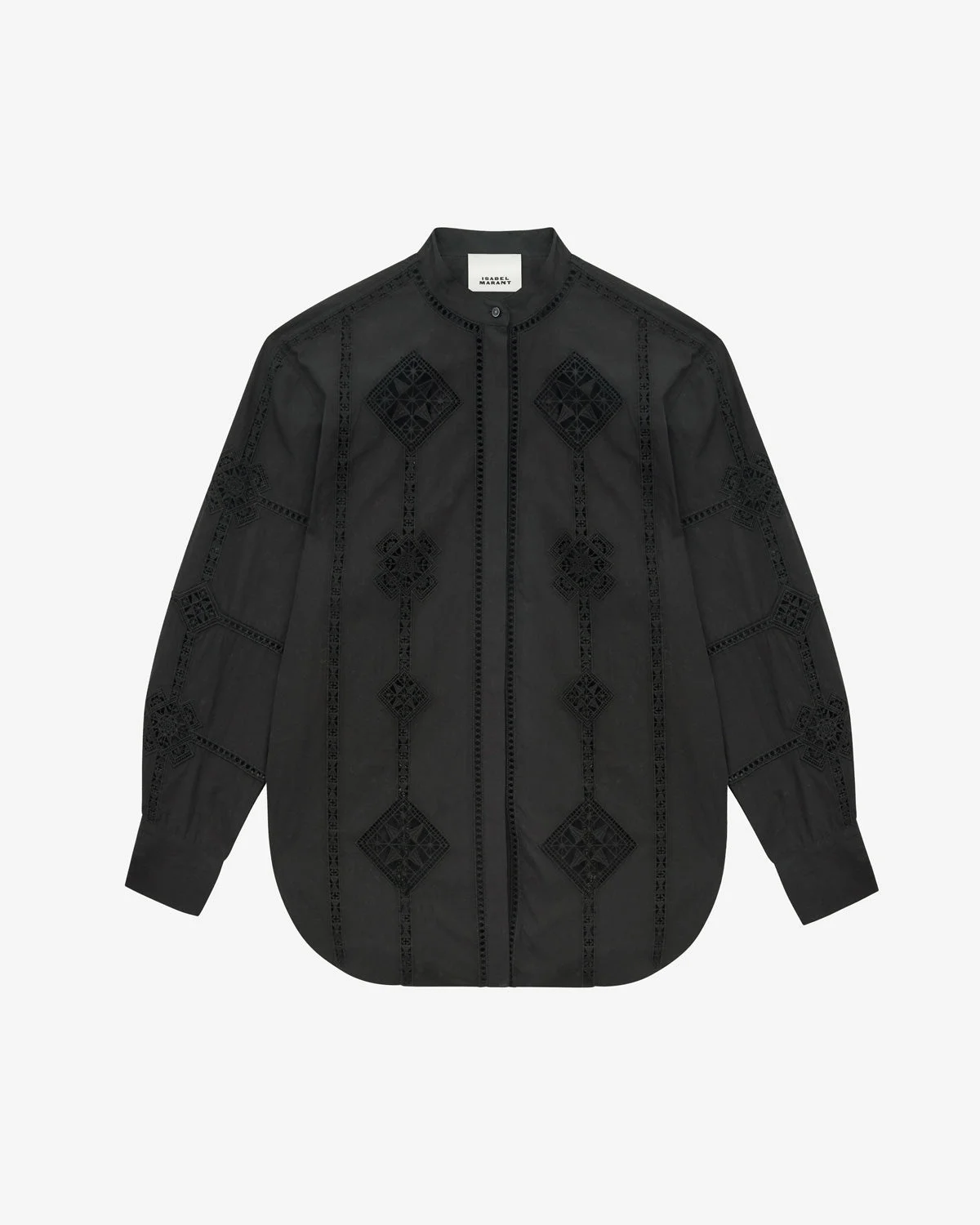 Shirt in openwork cotton poplin Officer collar Hidden buttons Long sleeves Straight buttoned cuffs English embroidery details Straight cut Style: CH0203FAC1J11I01BK SOELINE 100% cotton