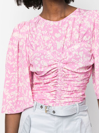 Lidiane ruched blouse Highlights - Rose pink - Stretch-silk - Ruched detailing - Abstract pattern print - Round neck - Three-quarter length sleeves - Straight hem Imported Composition Silk 91%, Spandex/Elastane 9% SIZE & FIT Model measurements Height 5 ft 10 in(1.78 m) Bust/Chest 31.49 in(80 cm) Hips 37 in(94 cm) Waist 23.62 in(60 cm) FittingInformation This piece fits true to size. We recommend you get your regular size Cut for a slim fit Made with a lightweight stretch fabric Washing instructions Dry Clean Only