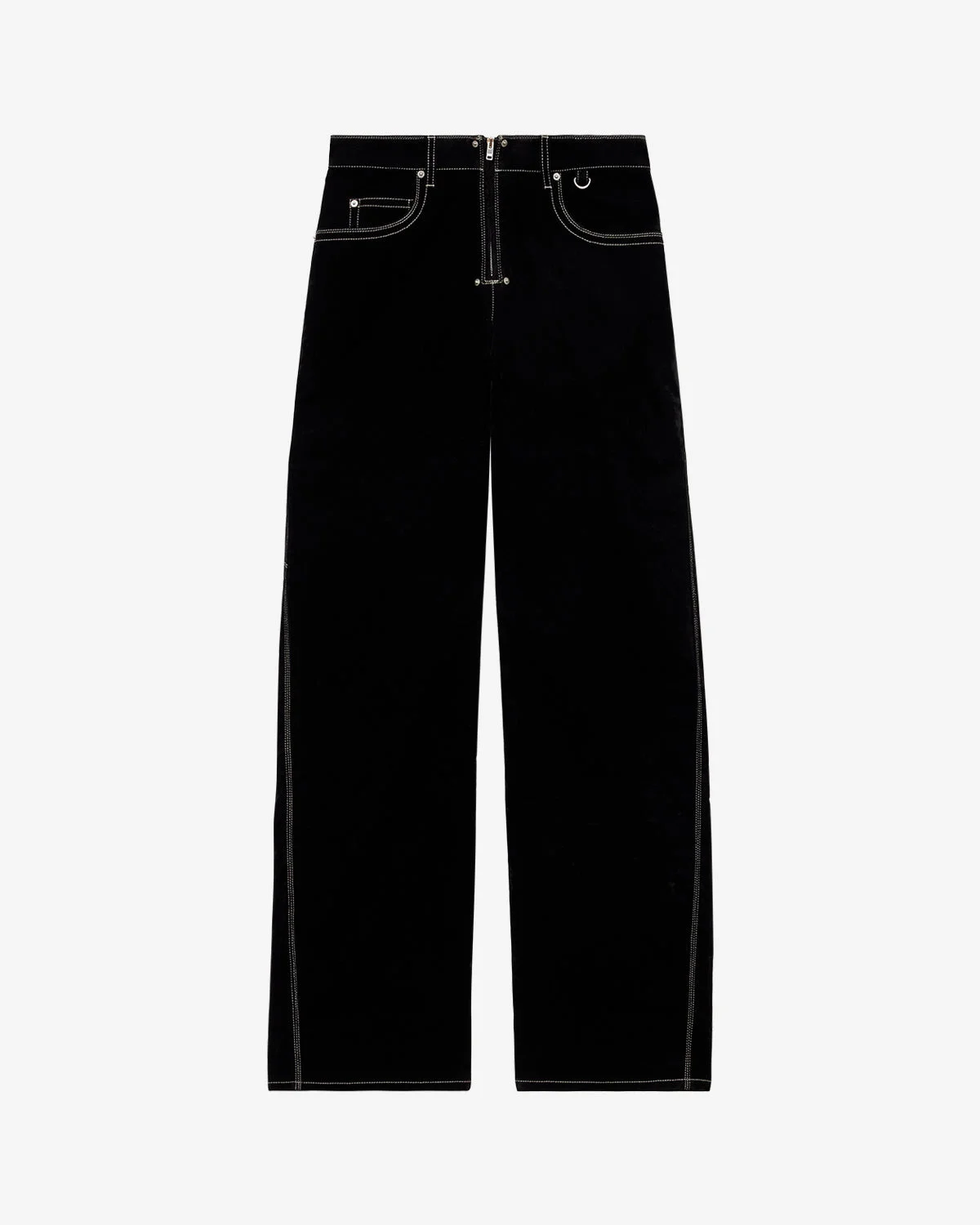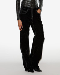 Wide-leg velvet jeans Fitted waistband with loops Done up with a visible zipper 5 pockets and a side patch pocket Contrasting topstitches Leather label in back with an embossed "Isabel Marant" logo Metal rivets and waist D-ring detail Relaxed fit Style: PA0650FA-C4H02I STELYNA 97% cotton, 3% elastane