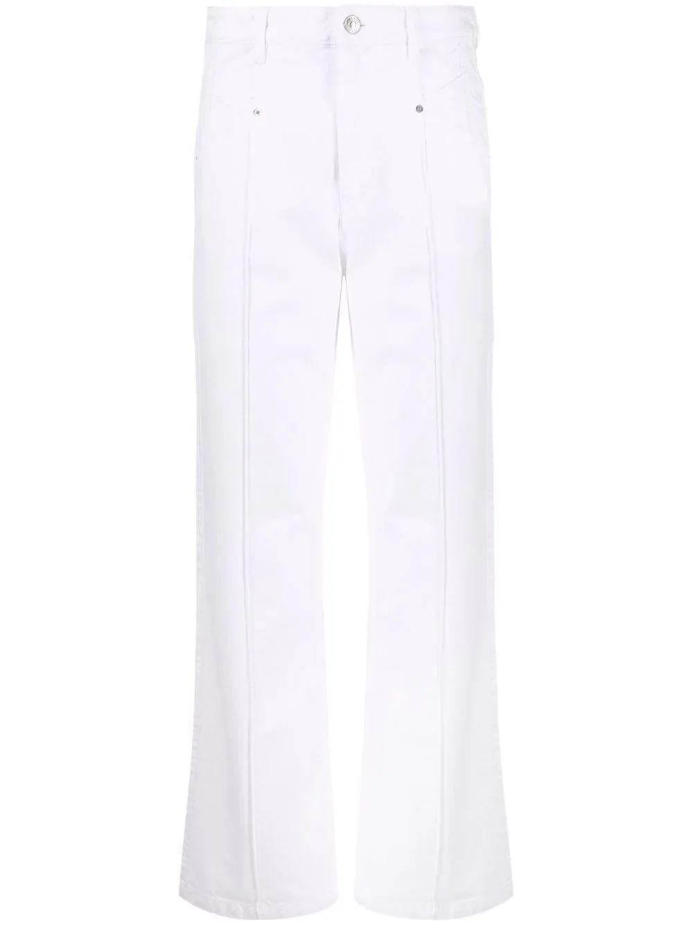 straight-leg trousers Isabel Marant turns to wardrobe staples to present the latest collection. These straight-leg trousers are both classic and timeless thanks to their soft white cotton design and wide leg. Imported Composition Outer: Cotton 100% Lining: Cotton 100% SIZE & FIT Model measurements Height 5 ft 11 in(1.8 m) Bust/Chest 31.49 in(80 cm) Hips 36.61 in(93 cm) Waist 24.4 in(62 cm) FittingInformation This piece fits true to size. We recommend you get your regular size Designed to be fitted at the waist and hips, loose over the leg Made with a mid-weight non-stretch fabric Washing instructions Machine Wash