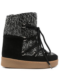 Nowla knitted lace-up ankle boots Highlights - Black - Knitted detail - Lace-up fastening - Suede panels - Metal eyelets - Flat sole - This piece comes complete with a protective dust bag. Imported Composition Outer: Calf Suede 100%, Velvet 100%, Acrylic 70%, Wool 30% Lining: Sheep Skin/Shearling 100% Sole: Rubber 100%