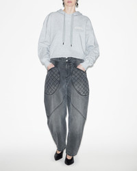 Plain-colored cotton sweatshirt Round neckline Adjustable hood with wide drawstring Long sleeves Contrasting "Isabel Marant" logo embroidered on the chest Kangaroo pocket in front Metal string finishes Ribbed finishes Relaxed fit 88% organic cotton, 12% recycled polyester