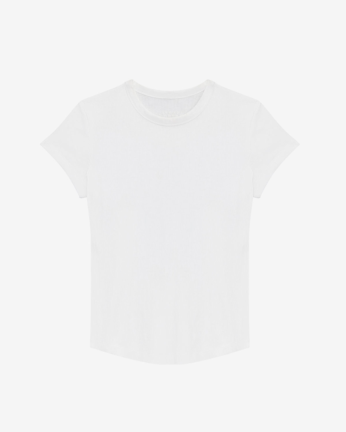 T-shirt in ribbed cotton jersey Round neckline with ribbed finishes Short sleeves Rounded hem Tone-on-tone "Isabel Marant" logo embroidered on the back Rounded hem Straight cut Style: TS0111FA-A2N39I TAOMI 100% cotton