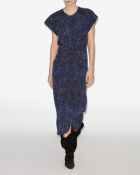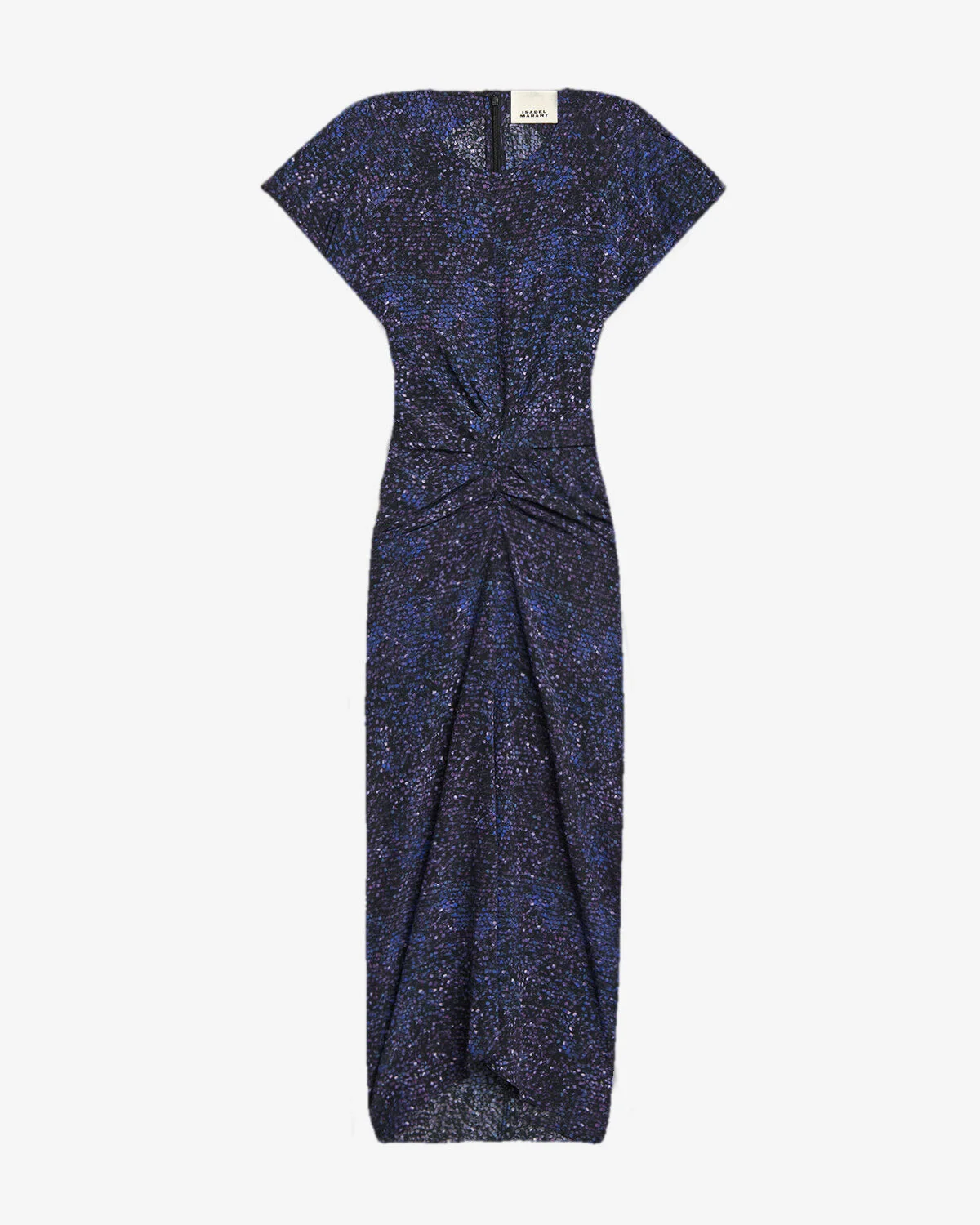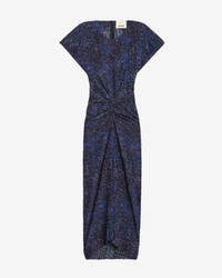 Gathered printed silk blend mosaic pattern midi dress Round neckline Short pleated butterfly sleeves Gathered, draped style waist Done up in back with a button and a hidden zipper Asymmetrical hem Lightweight unlined fabric Flowing cut, fitted at the waist Style: RO0373FBC3J08I30MI TERENA 91% silk, 9% elastane