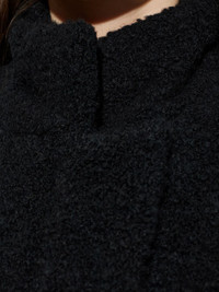 textured jacket Highlights - Black - Textured finish - Collarless - Long sleeves - Front pockets Imported Composition Acrylic 46%, Wool 38%, Polyester 16% Washing instructions Read Manufacturer Guidelines