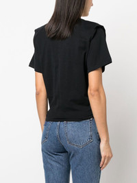 Zelikia tie-waist T-shirt Zelikia tie-waist T-shirt from ISABEL MARANT featuring black, organic cotton, jersey knit, round neck, pinched shoulders, short sleeves, front tie fastening and cropped. Conscious: This item is made from at least 50% organic materials. Imported Composition Organic Cotton 100% SIZE & FIT Model measurements Height 5 ft 10 in(1.79 m) Bust/Chest 31.9 in(81 cm) Hips 36.6 in(93 cm) Waist 24.4 in(62 cm) FittingInformation This piece fits true to size. We recommend you get your regular size Cut for a loose fit Made with a mid-weight fabric
