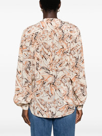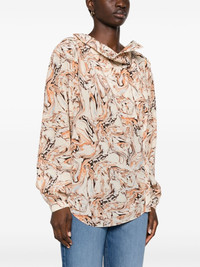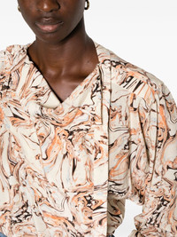 Tiphaine marble-print silk blouse Highlights - Beige - Silk - Crepe texture - Marbled pattern - Cowl neck - Scarf detailing - Drop shoulder - Long draped sleeves - Buttoned cuffs - Curved hem Imported Composition Silk 100% SIZE & FIT Model measurements Height 5 ft 10 in(1.77 m) Bust/Chest 32.28 in(82 cm) Hips 35.03 in(89 cm) Waist 25.19 in(64 cm) Measurement BUST 33.85 in(86 cm) LENGTH 21.65 in(55 cm) WAIST 27.55 in(70 cm) SLEEVE LENGTH 15.74 in(40 cm) FittingInformation Designed to be unstructured, offering a loose fit throughout Made from a lightweight non-stretch fabric This piece fits true to size – take your usual size Washing instructions Dry Clean Only