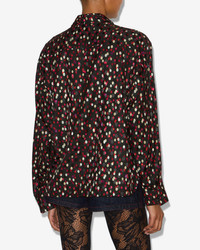 Silk polka dot print blouse Stand-up collar with tie style tail Long sleeves with buttoned cuffs Asymmetrical button tab Flowing cut Style: HT0743FA-C4J02I EMANY 90% silk, 10% elastane
