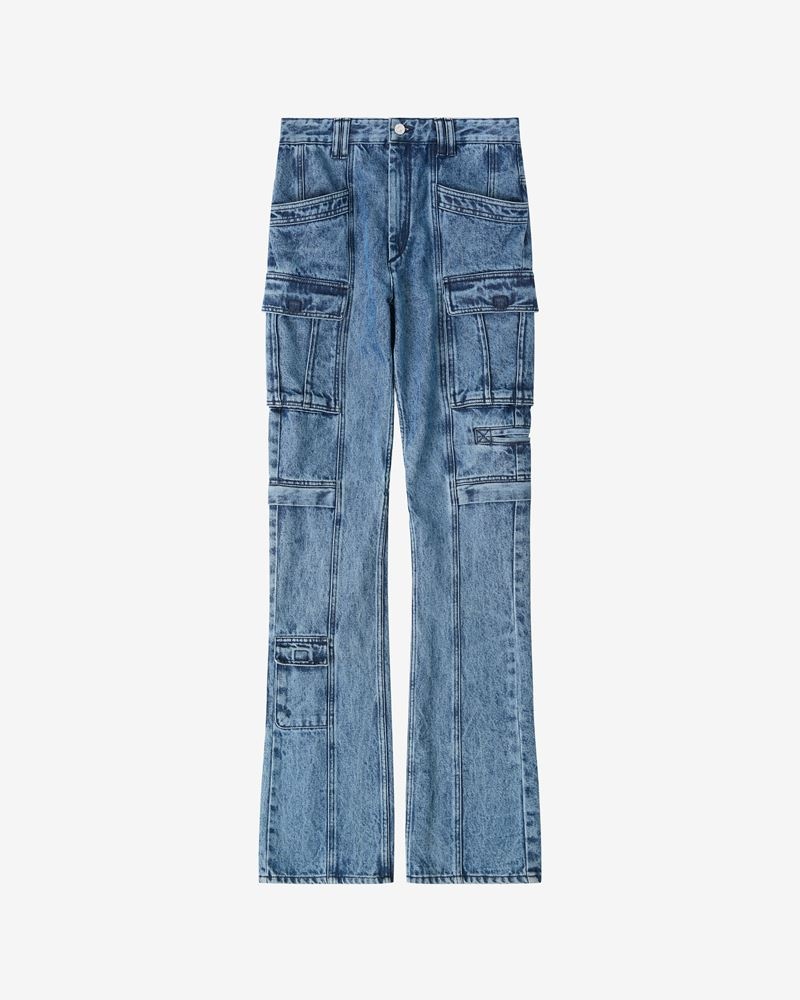 Blue straight-cut jeans Belt with loops Zip fastening Several front pockets The model is wearing a size FR 36 and she is 1m77 Reference : PA2244-22H020I VOKAYO 100% Cotton FITTING ADVICE Fits true to size