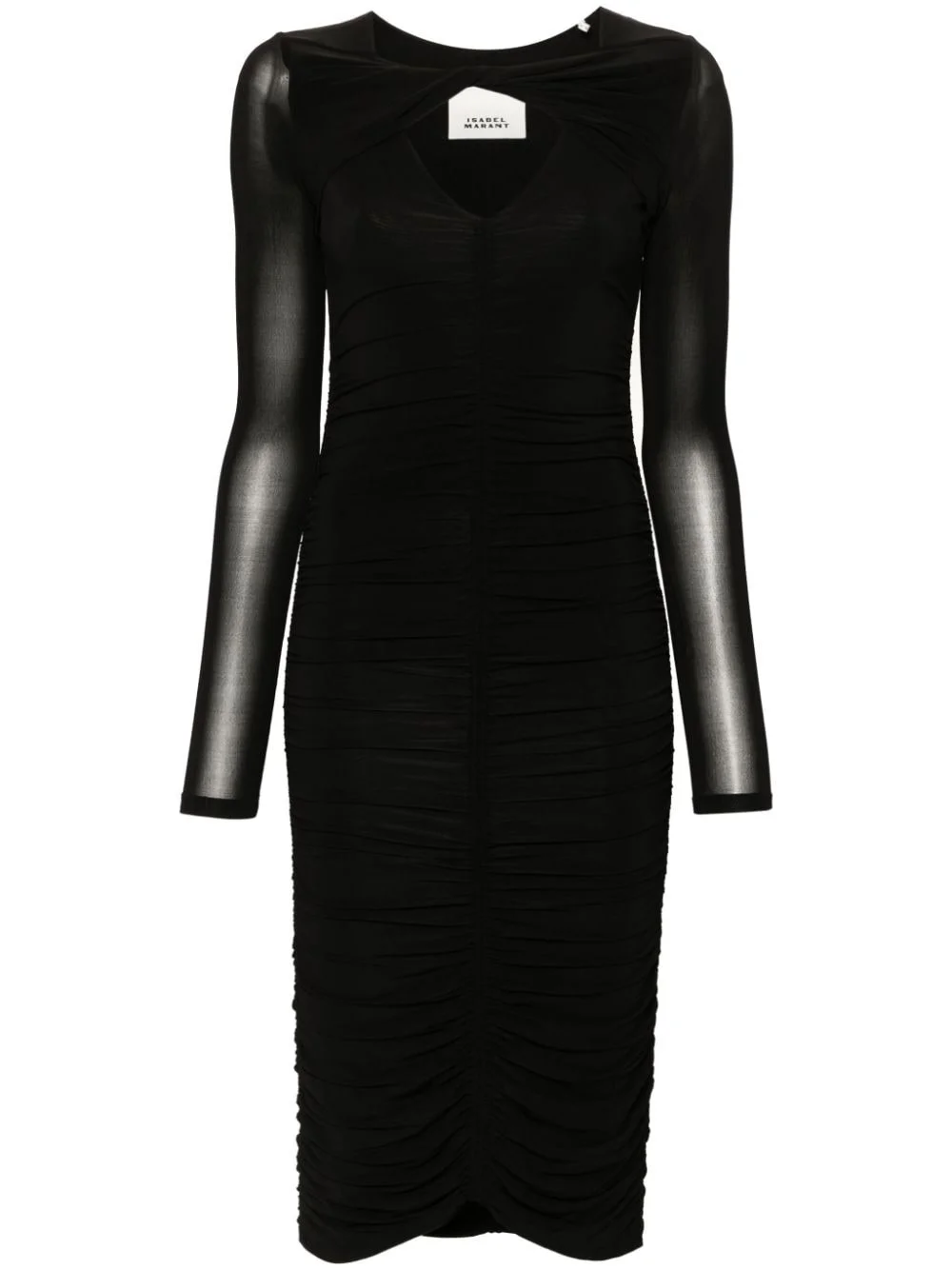 Volgane midi dress Highlights - Black - Stretch-design - Gathered detailing - Draped detailing - Square neck - Twist detailing - Cut-out detailing - Long sleeves - Mid-length - Full lining - Pull-on style Imported Composition Viscose 100% SIZE & FIT Model measurements Height 5 ft 10 in(1.78 m) Bust/Chest 31.49 in(80 cm) Hips 37 in(94 cm) Waist 23.62 in(60 cm) FittingInformation Designed for a close fit throughout Made from a midweight stretch fabric, this piece offers elasticity and flexibility when worn This piece fits true to size – take your usual size